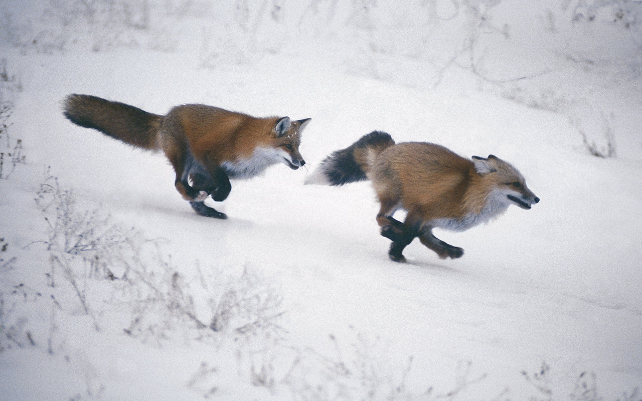 Скачать обои для рабочего стола Две бегущие лисицы и фото