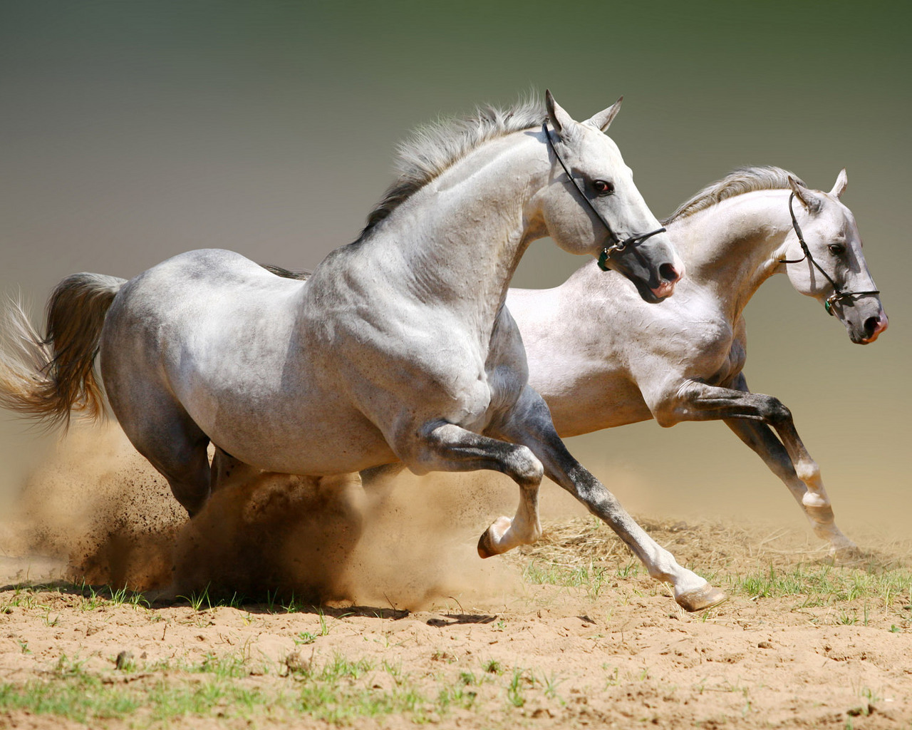 Скачать обои для рабочего стола Две лошади скачут и фото