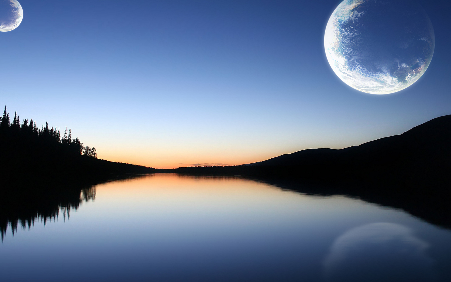 Скачать обои для рабочего стола Две планеты на небе и фото