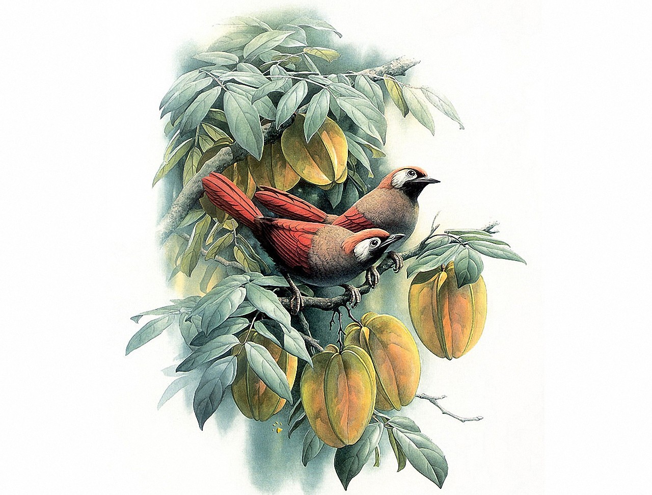 Обои Две птицы на ветке