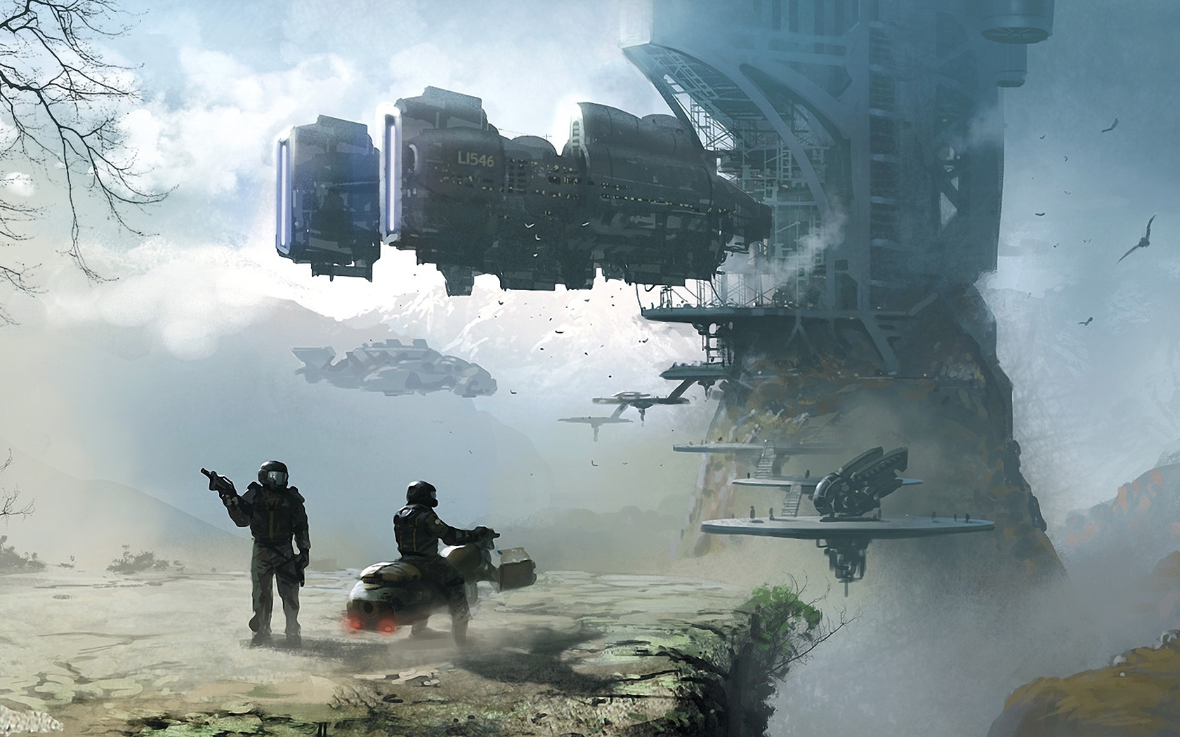 Похожие обои на Двое возле установки космической: