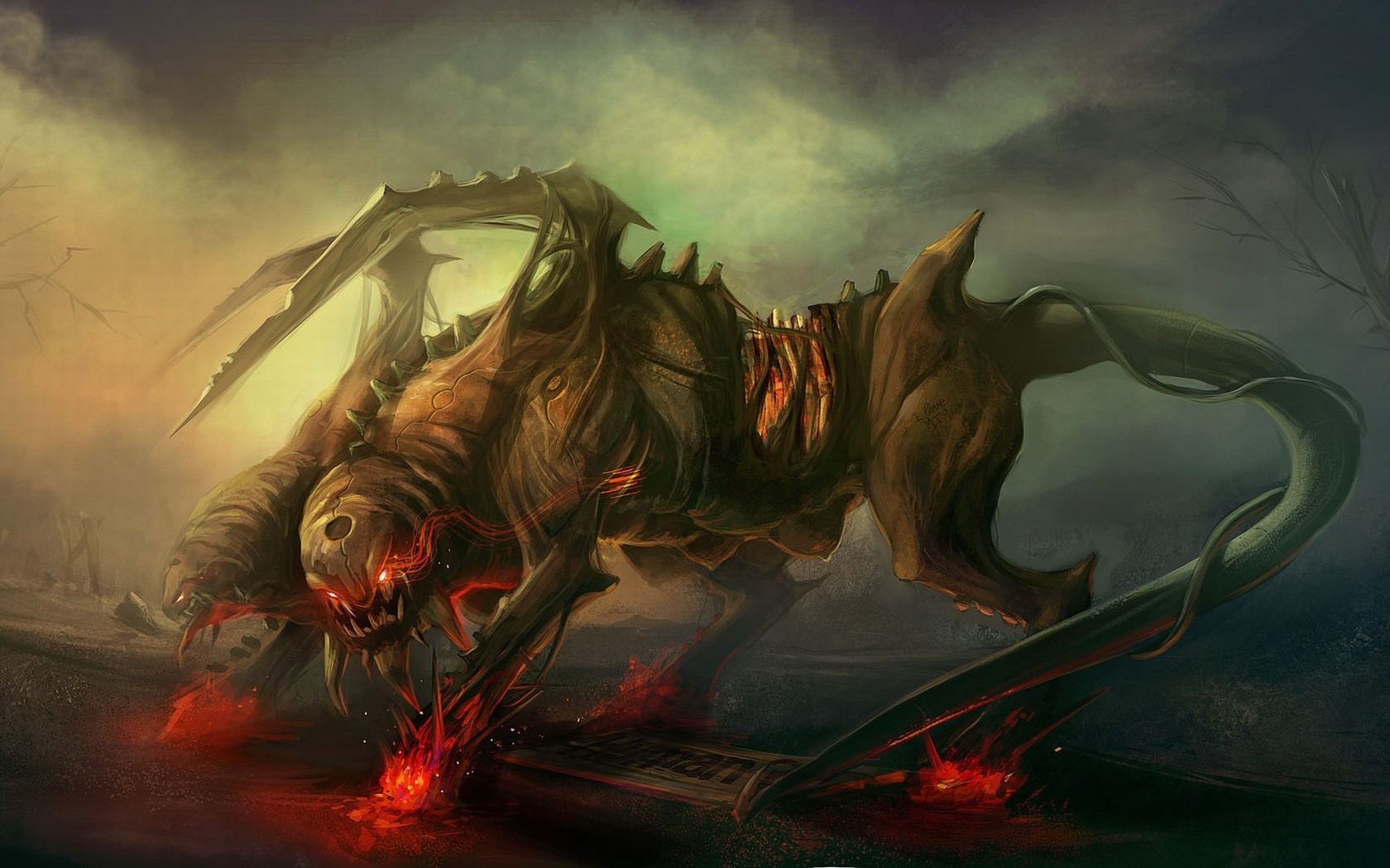 Скачать обои для рабочего стола Двухглавое собакообразное чудовище и фото