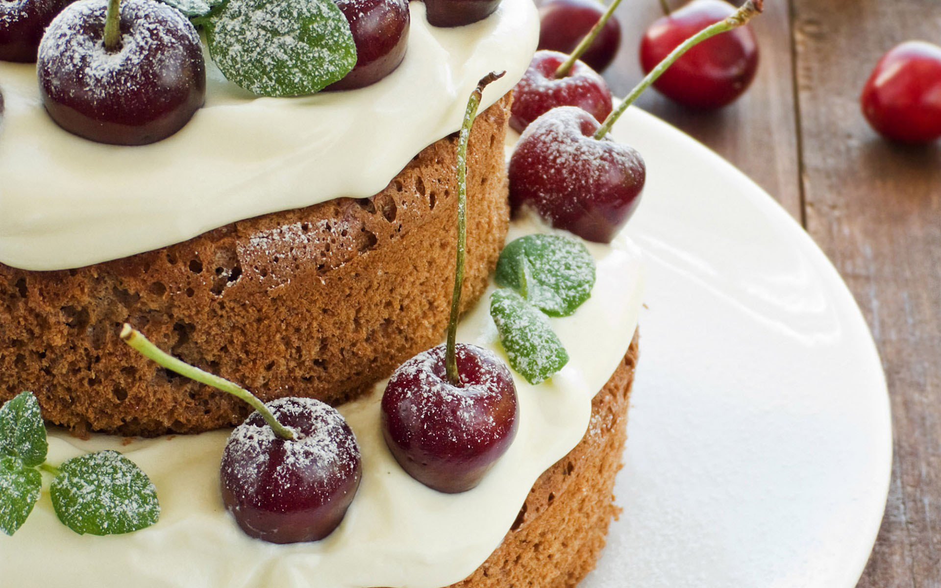 Скачать обои для рабочего стола Двухярусный торт с вишней и фото