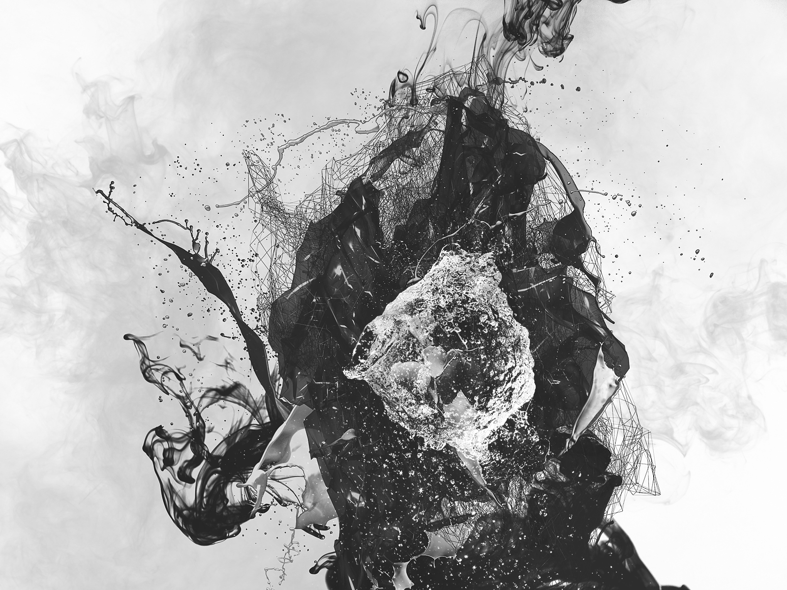Обои Дым, брызги, шар, капли