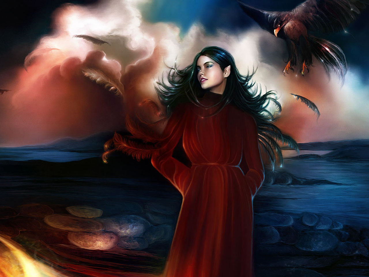 Скачать обои для рабочего стола Эльфийка на берегу моря и фото