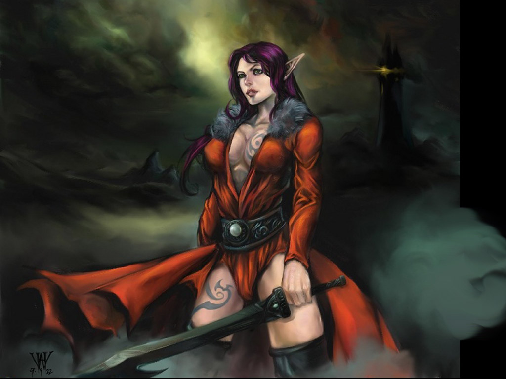 Скачать обои для рабочего стола Эльфийка с оружием и фото