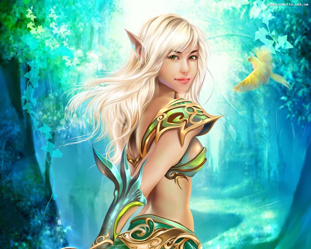 Скачать обои для рабочего стола Эльфийка в лесу и фото