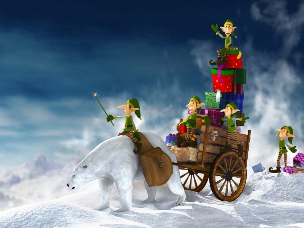 Скачать обои для рабочего стола Эльфы везут подарки и фото
