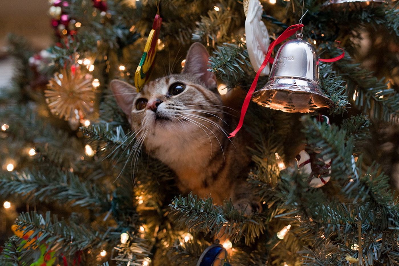 Скачать обои для рабочего стола Ёлка и котёнок и фото