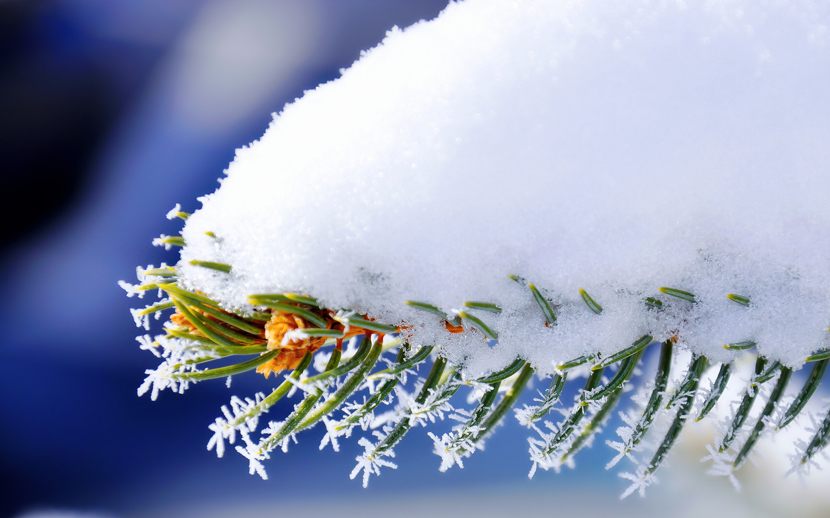 Скачать обои для рабочего стола Елочная веточка, свежий снег и фото