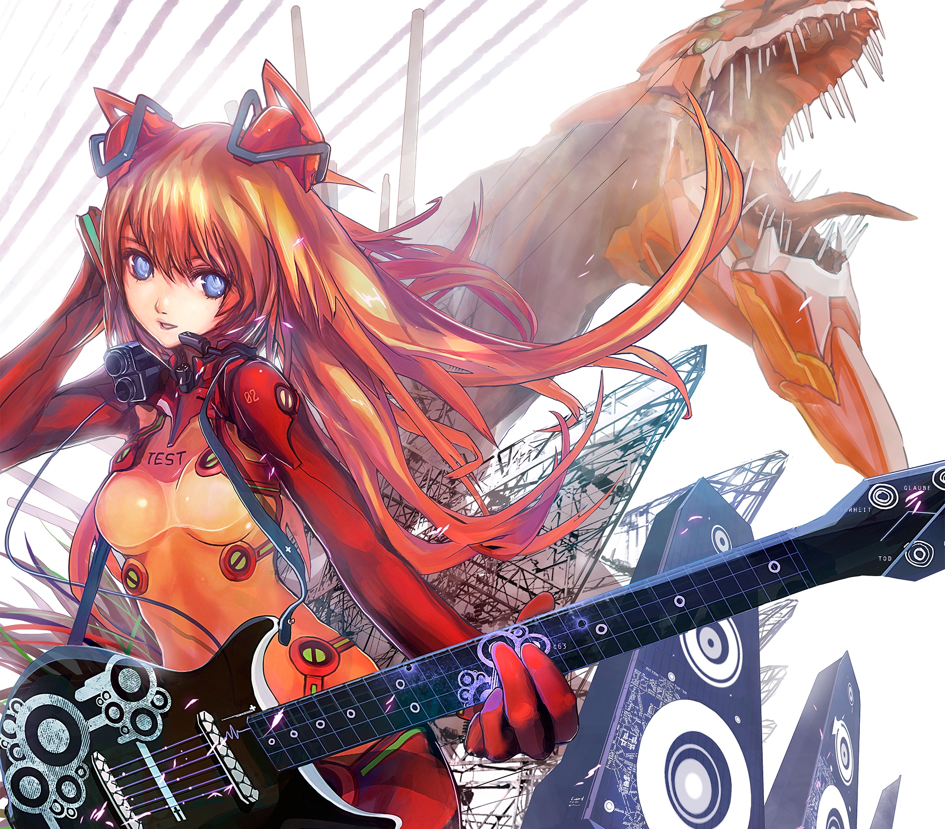 Похожие обои на Evangelion - Аска с гитарой на фоне ЕВЫ: