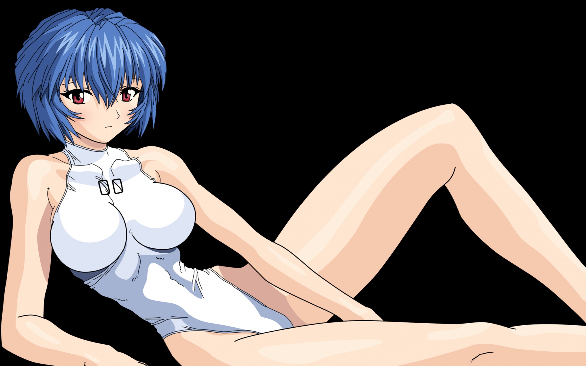 Скачать обои для рабочего стола Evangelion - Аянами Рей в белом на черном фоне и фото