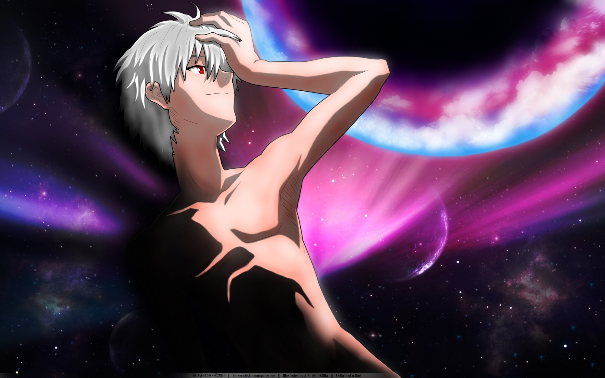 Скачать обои для рабочего стола Evangelion - Kaworu Nagisa на фоне космоса и фото