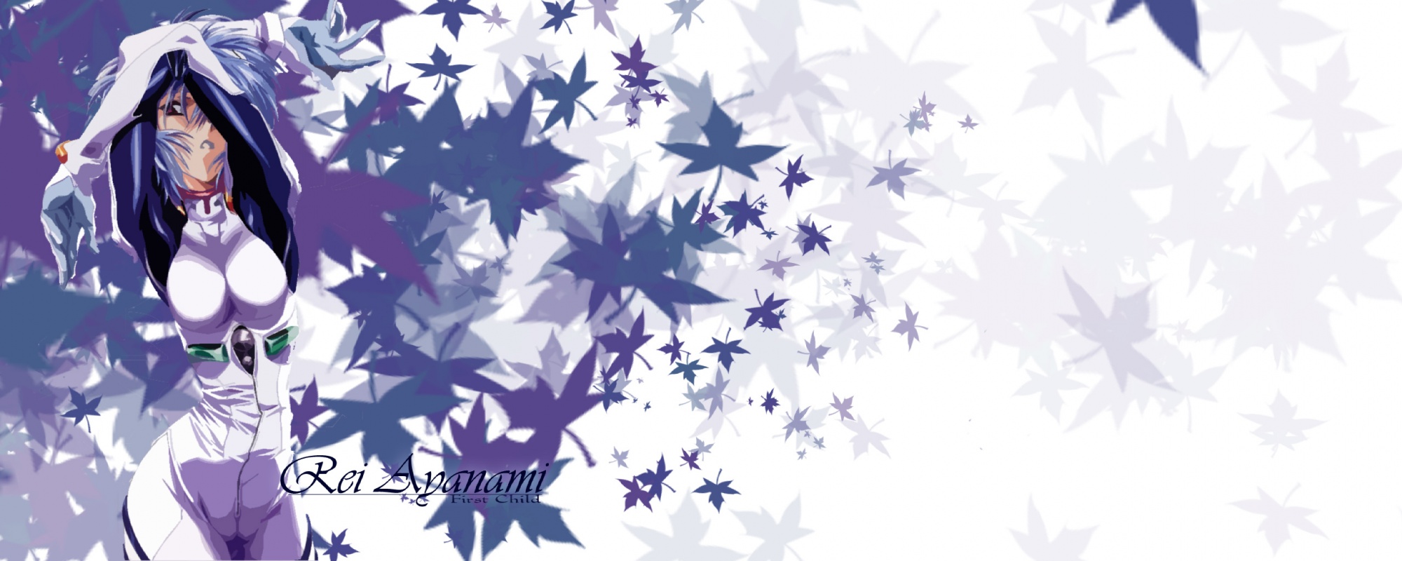 Обои Evangelion - Рей на фоне синих листьев