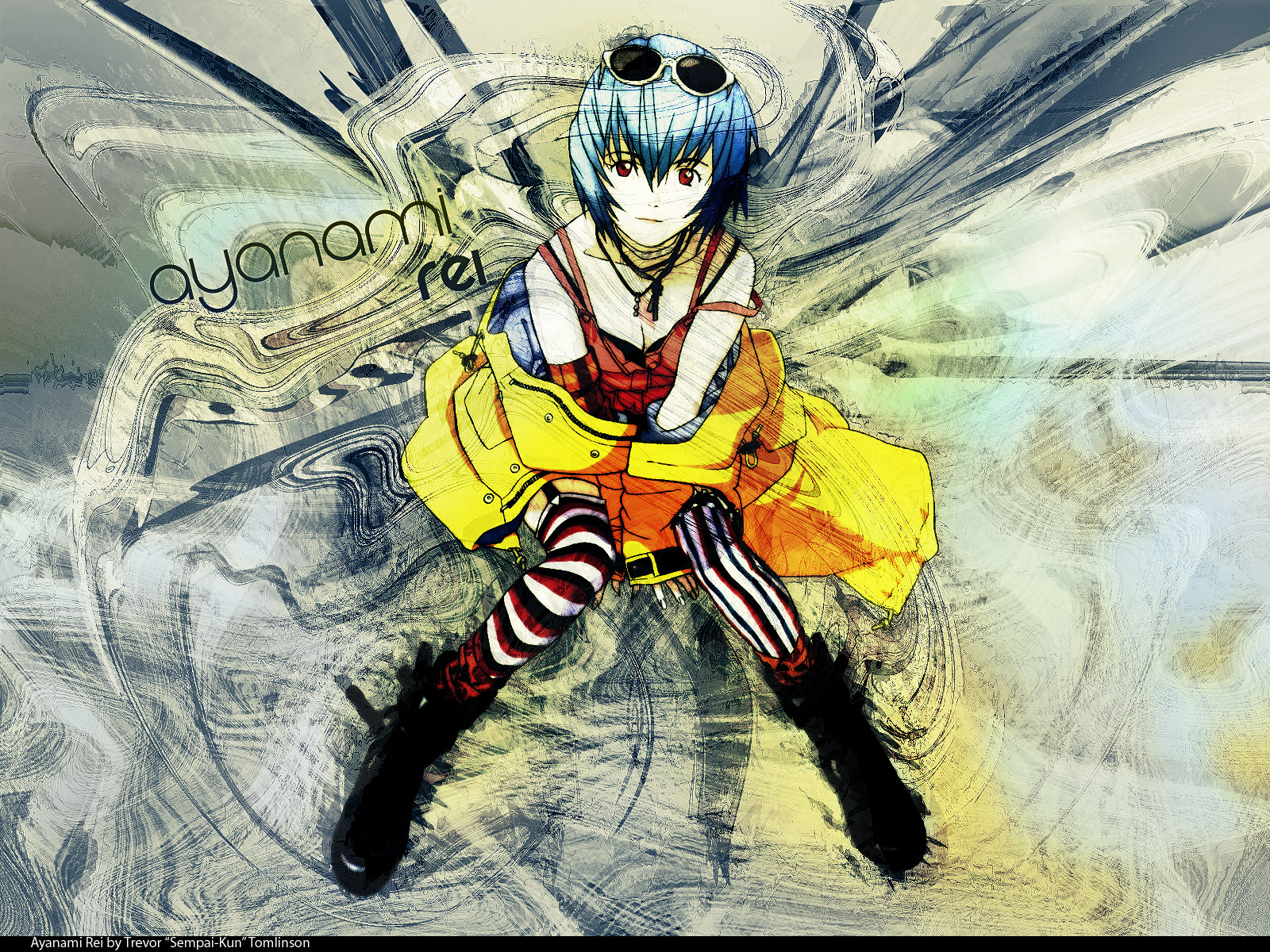 Скачать обои для рабочего стола Evangelion - Рей в желтом и фото