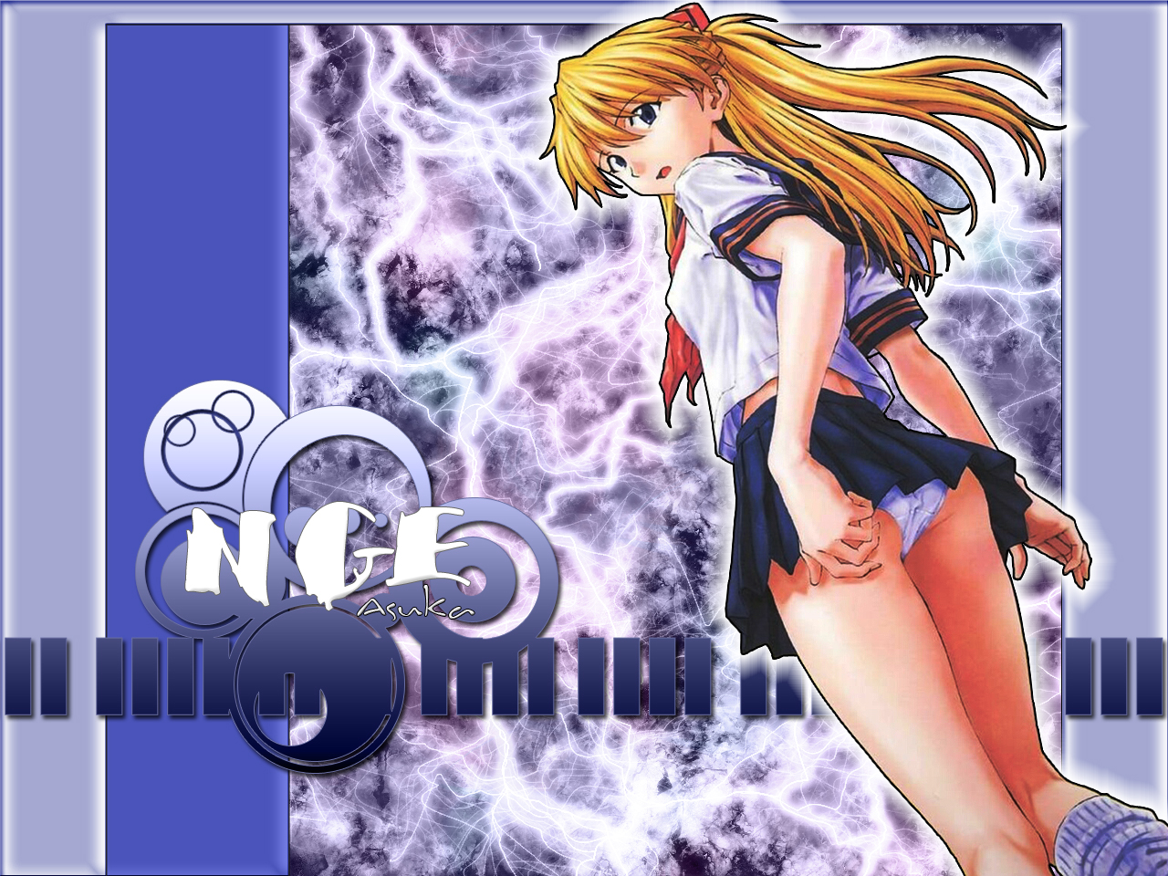 Скачать обои для рабочего стола Evangelion - Soryu Asuka в школьной форме вид снизу и фото