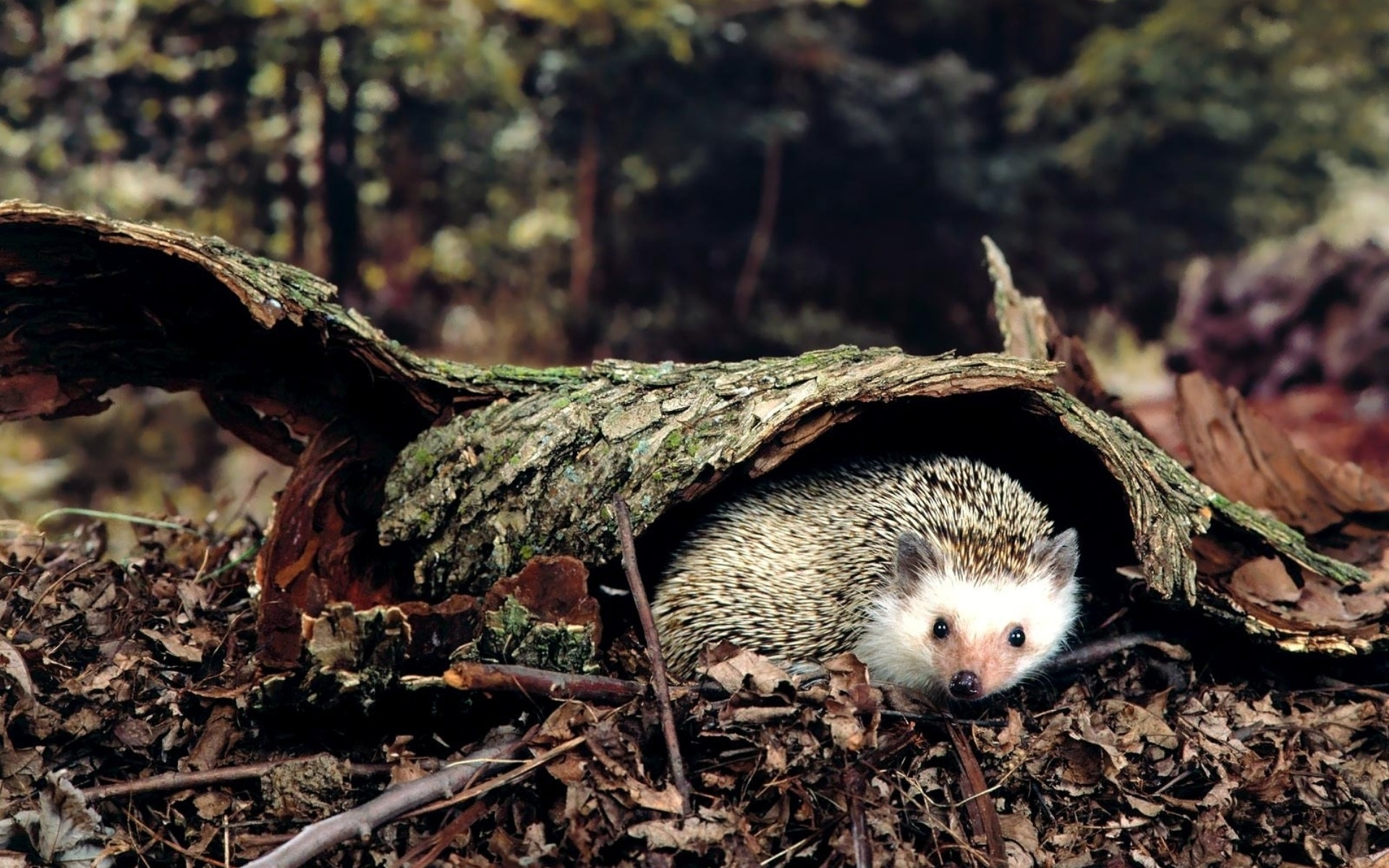 Скачать обои для рабочего стола Ёжик в бревне и фото