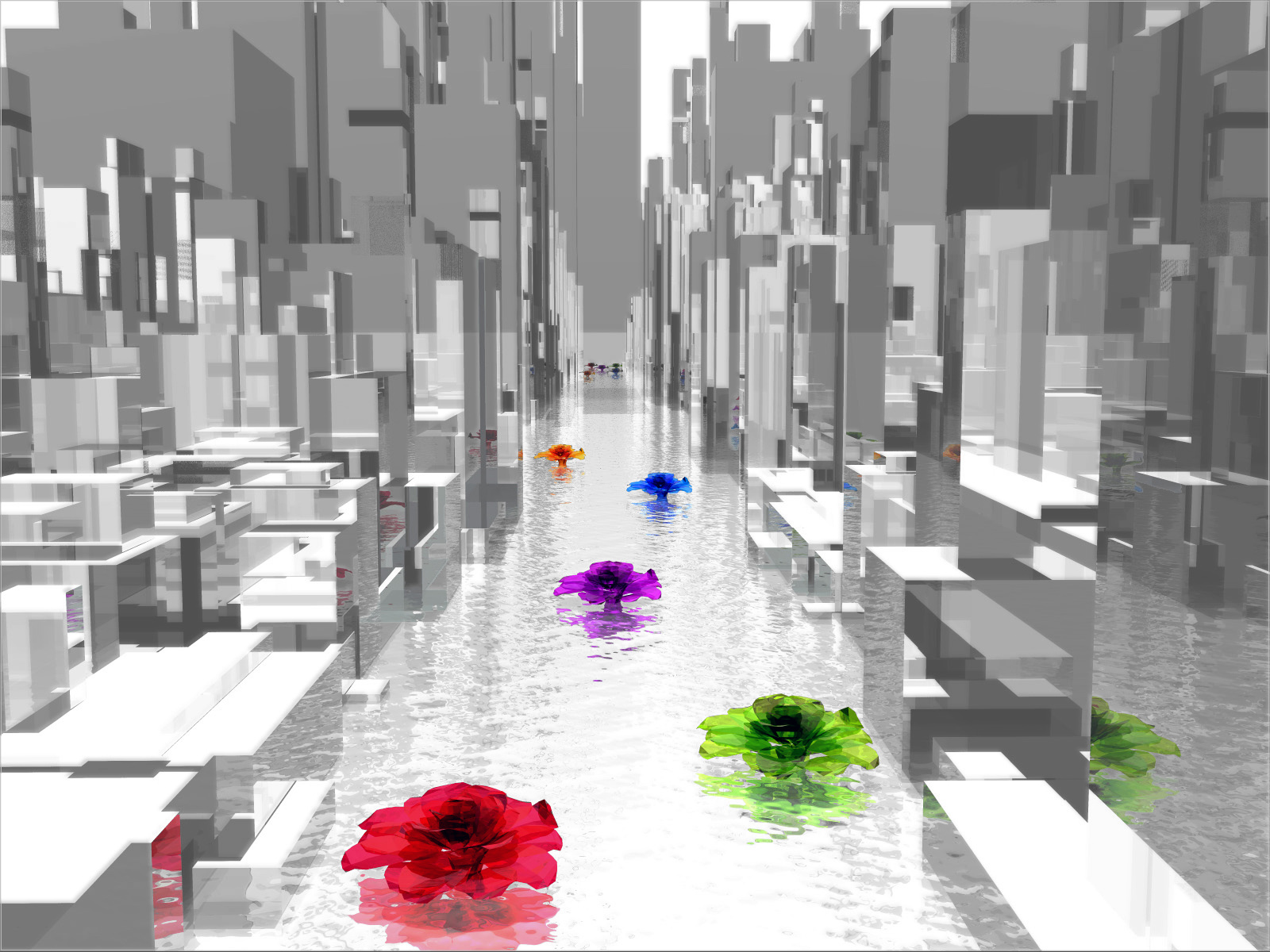 Скачать обои для рабочего стола Фантастический город с разноцветными цветами и фото