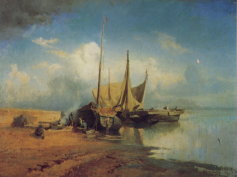Обои Федор Александрович Васильев - Вид на Волге. Барки