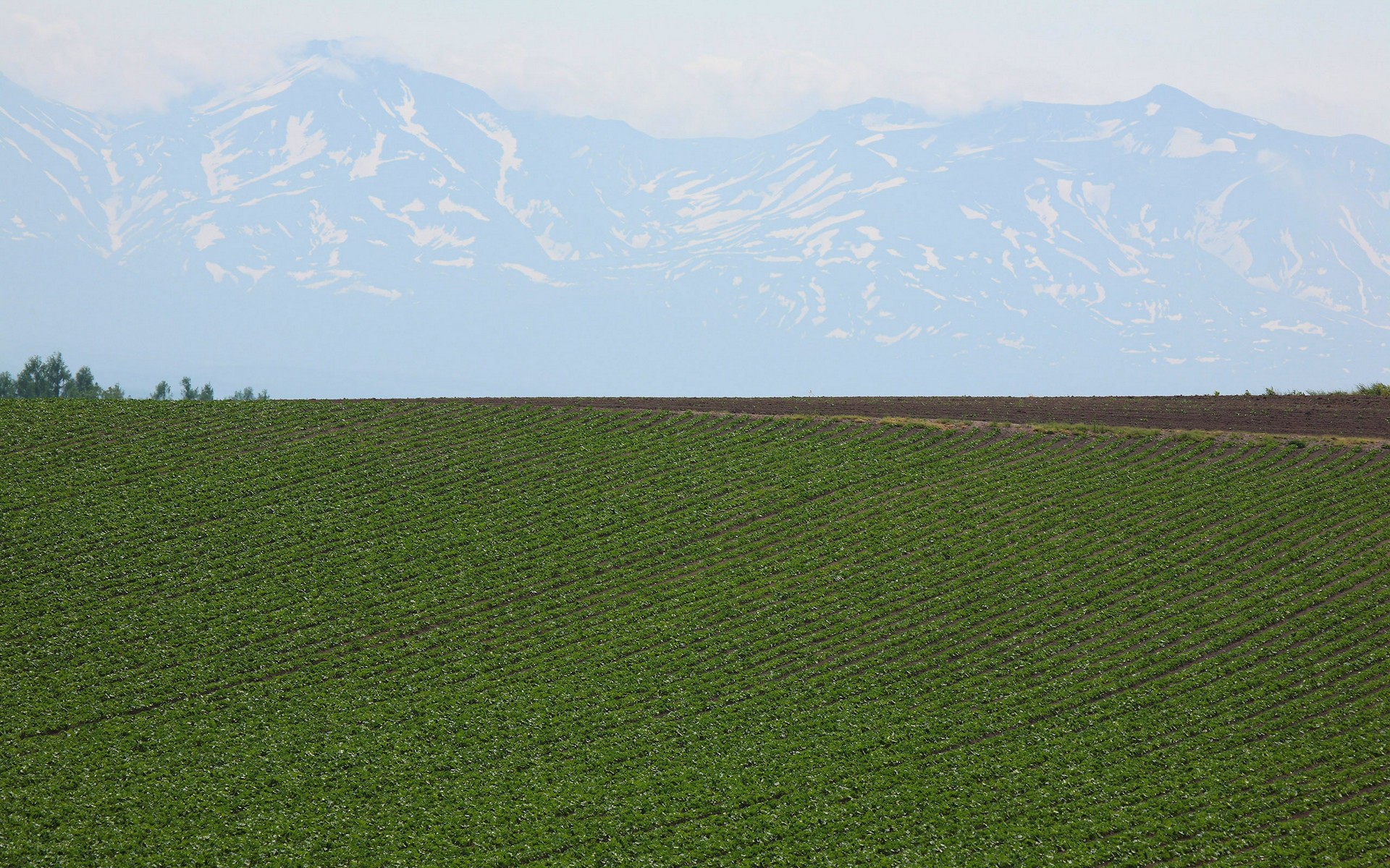Скачать обои для рабочего стола Фермерские поля у гор и фото