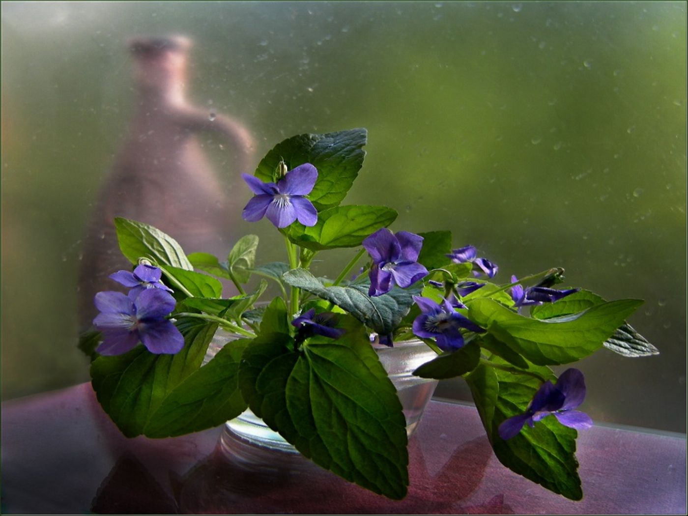 Скачать обои для рабочего стола Фиалки за стеклом и фото