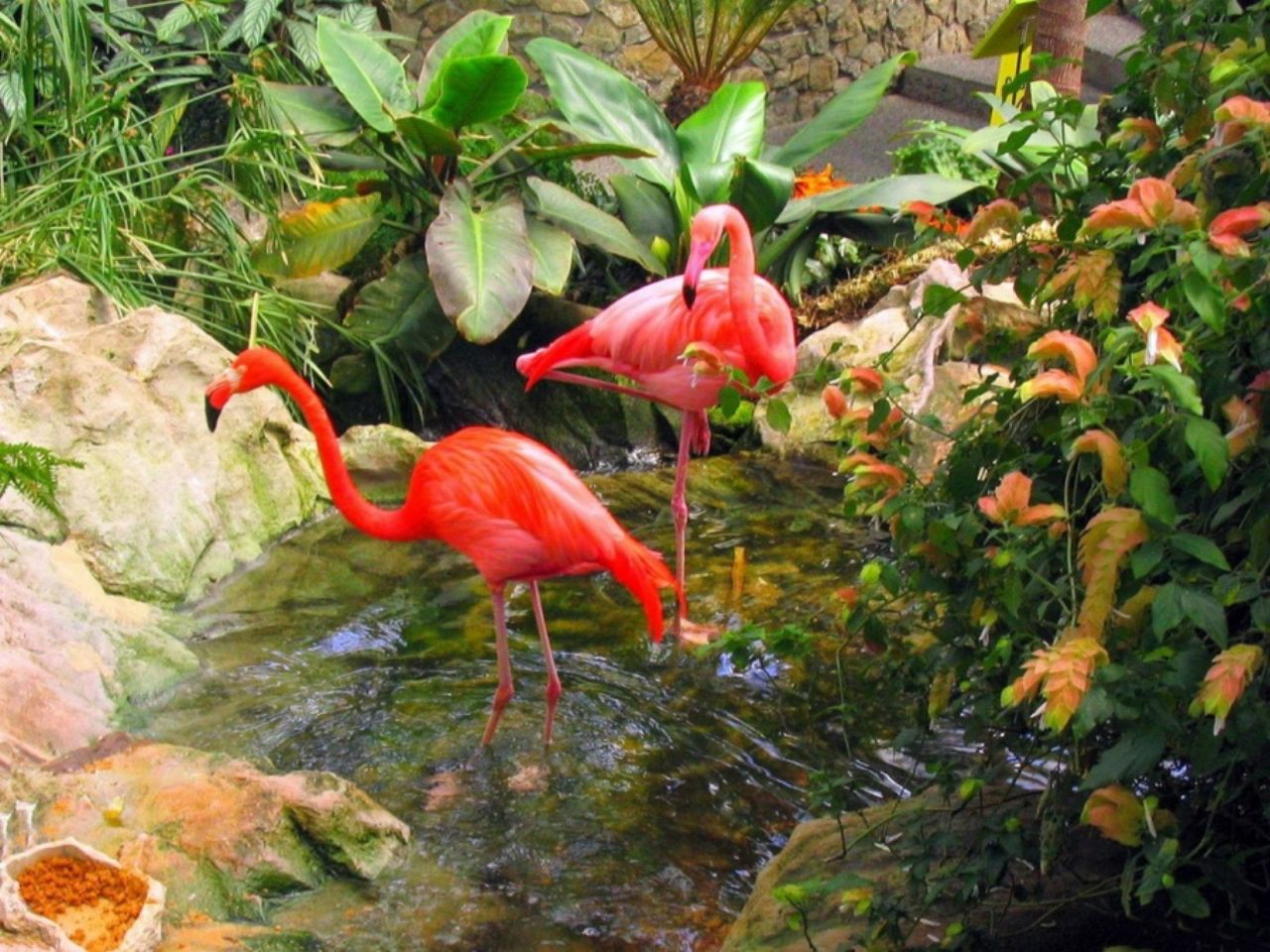 Скачать обои для рабочего стола Фламинго и родник и фото