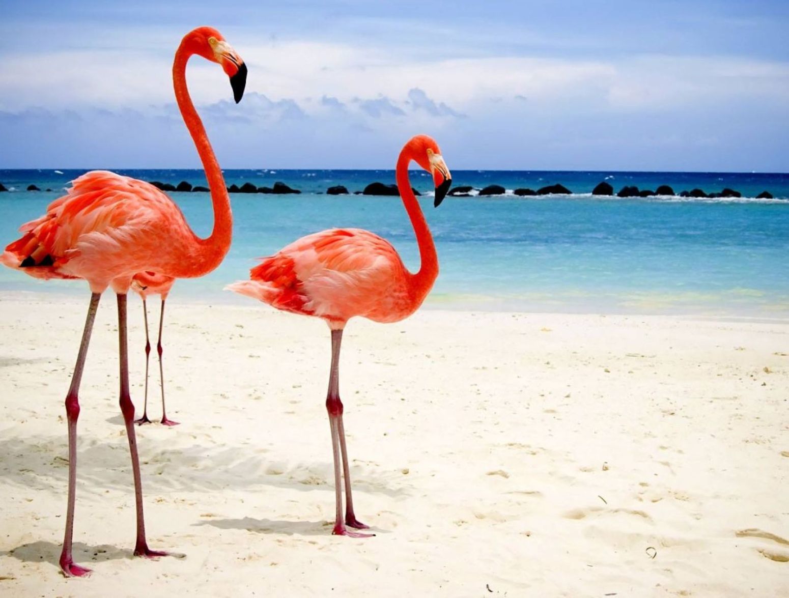 Скачать обои для рабочего стола Фламинго на отдыхе и фото
