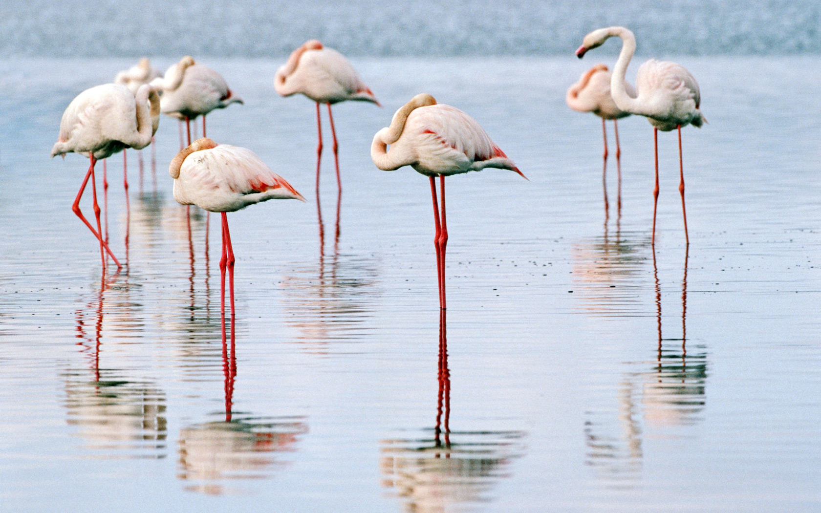 Скачать обои для рабочего стола Фламинго отдыхают и фото