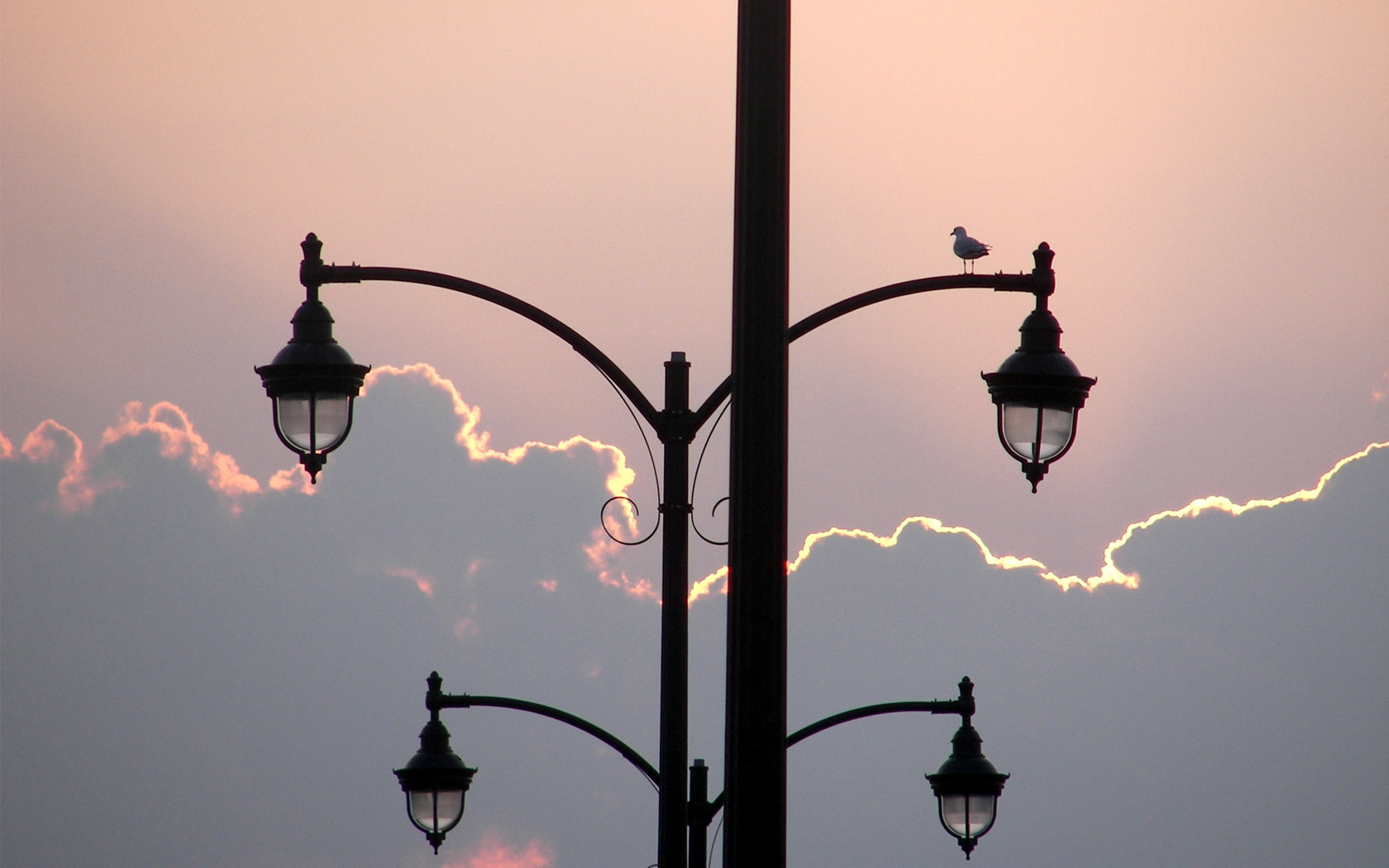 Скачать обои для рабочего стола Фонарный столб под розовым небом и фото