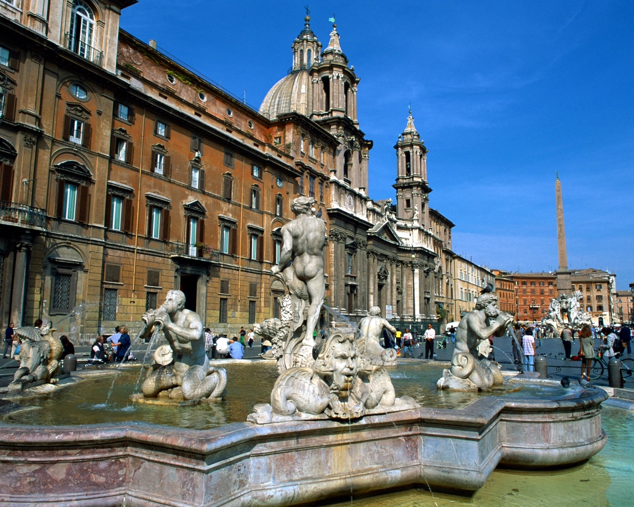 Скачать обои для рабочего стола Фонтан со статуями и фото