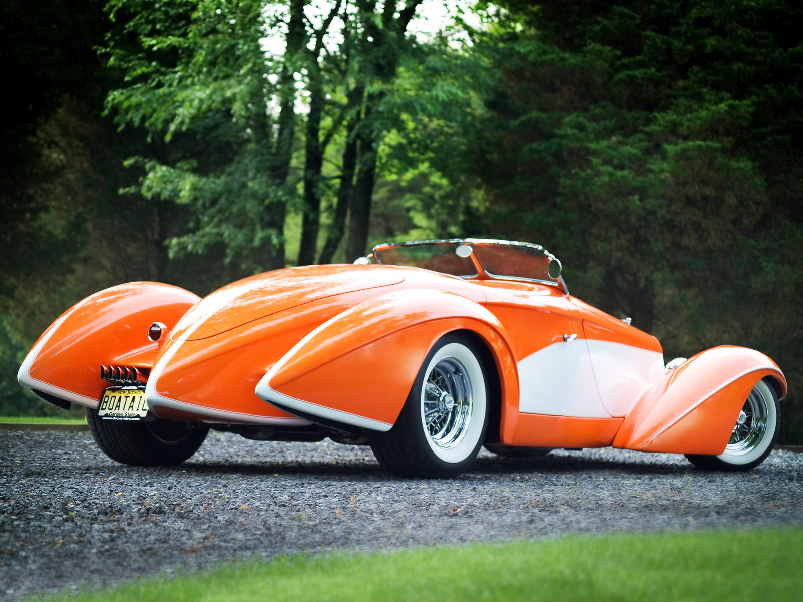 Скачать обои для рабочего стола Foose Design Deco Rides Boattail Speedster на дороге и фото