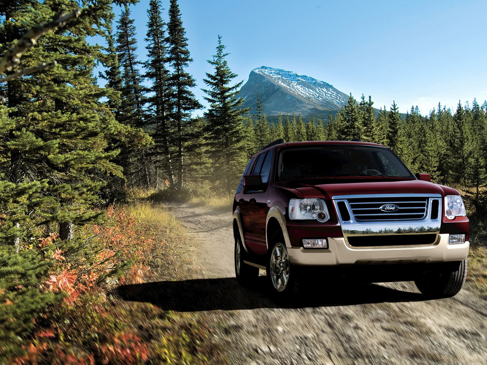 Скачать обои для рабочего стола Ford Explorer 2008 вид авто в движении и фото