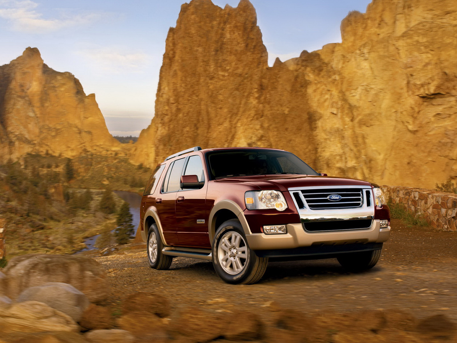 Скачать обои для рабочего стола Ford Explorer вид авто на фоне гор и фото