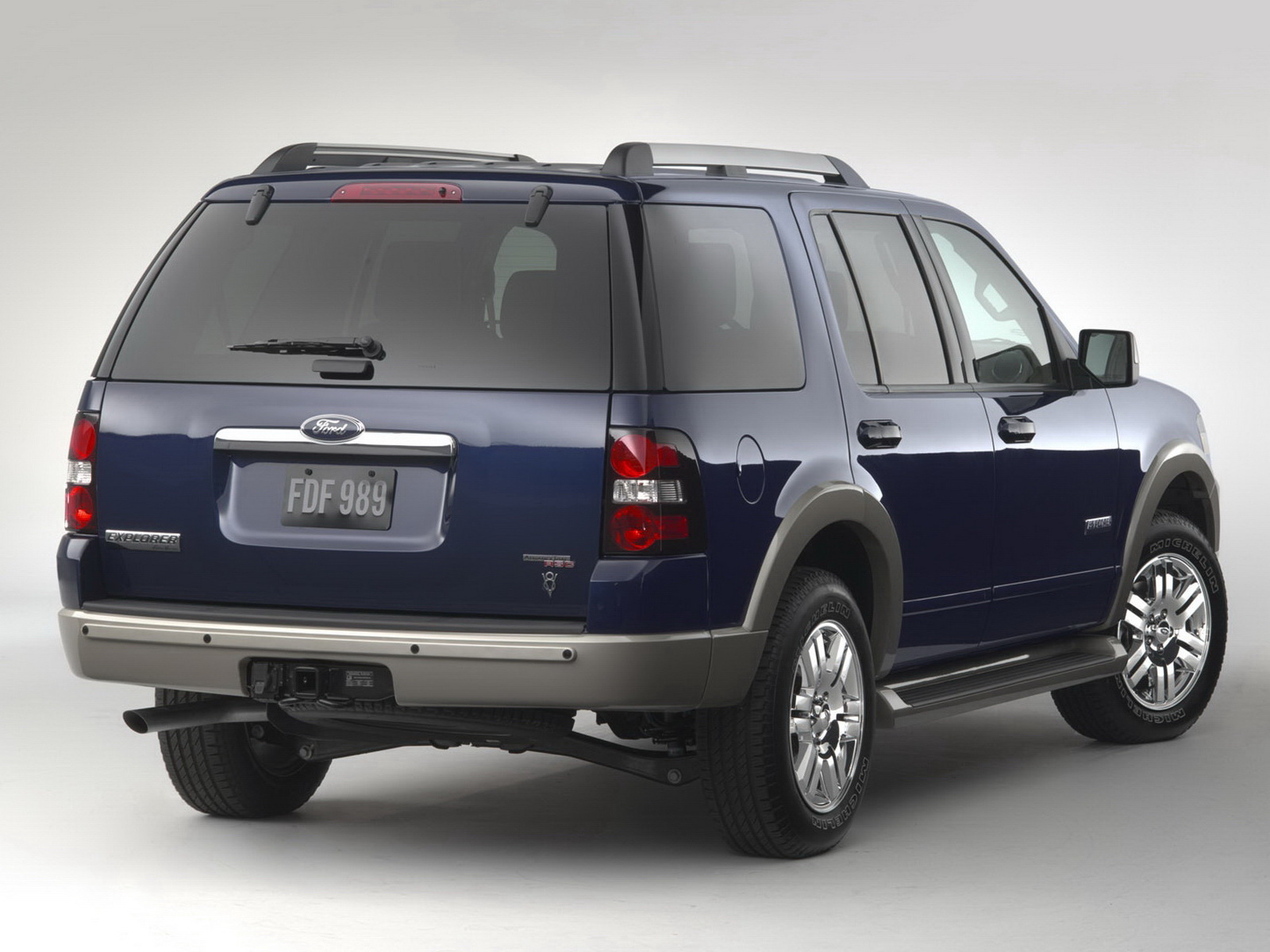 Скачать обои для рабочего стола Ford Explorer вид авто сзади с другого ракурса и фото
