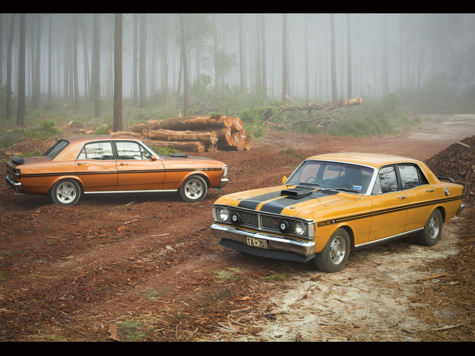 Скачать обои для рабочего стола Ford Falcon XW gt на лесорубке и фото