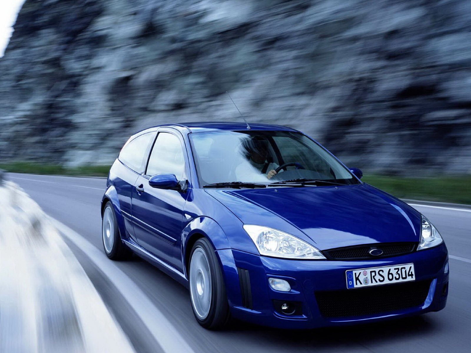 Скачать обои для рабочего стола Ford Focus RS вид авто на трассе и фото