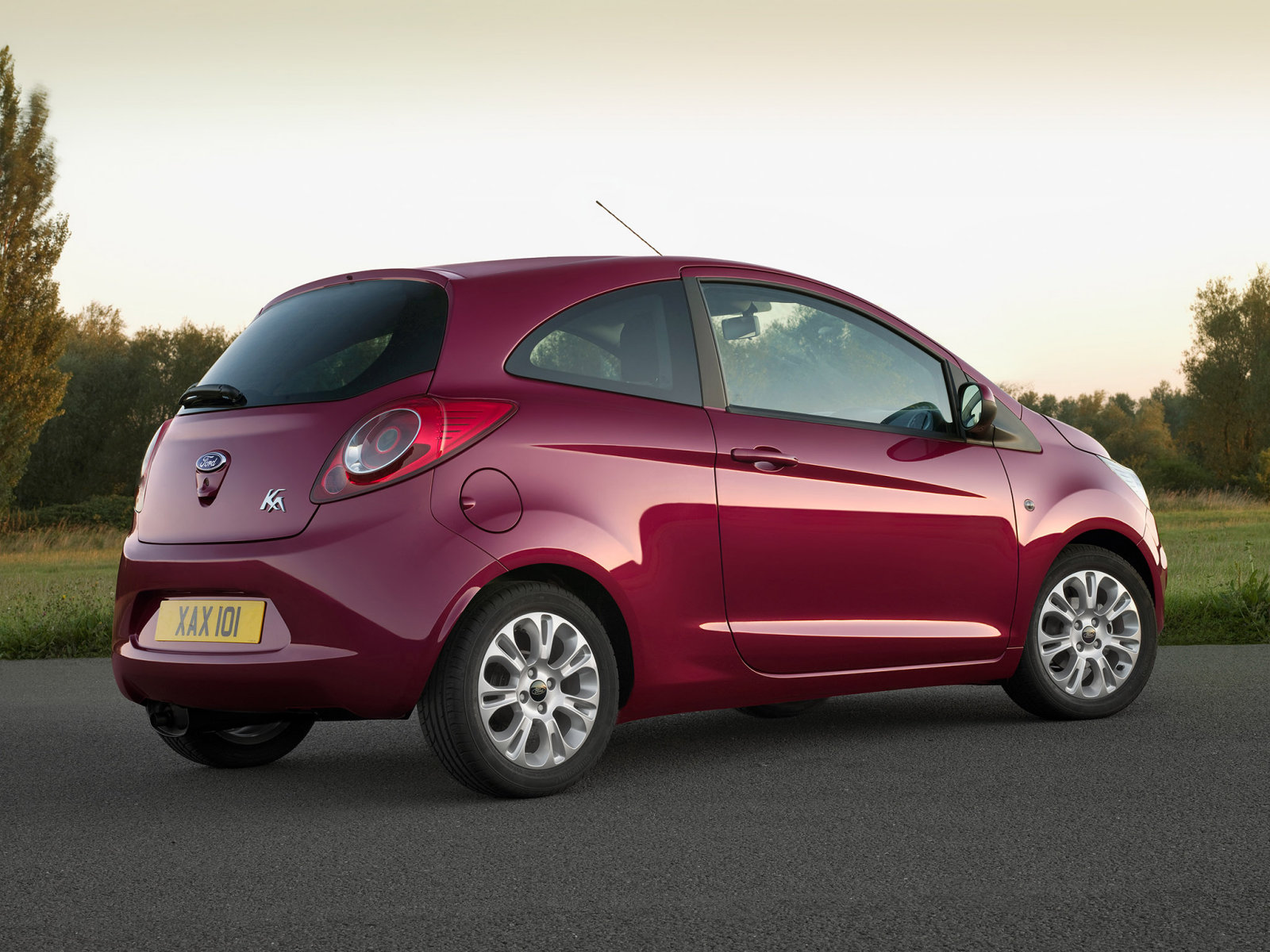 Скачать обои для рабочего стола Ford Ka вид сзади на фоне леса и фото