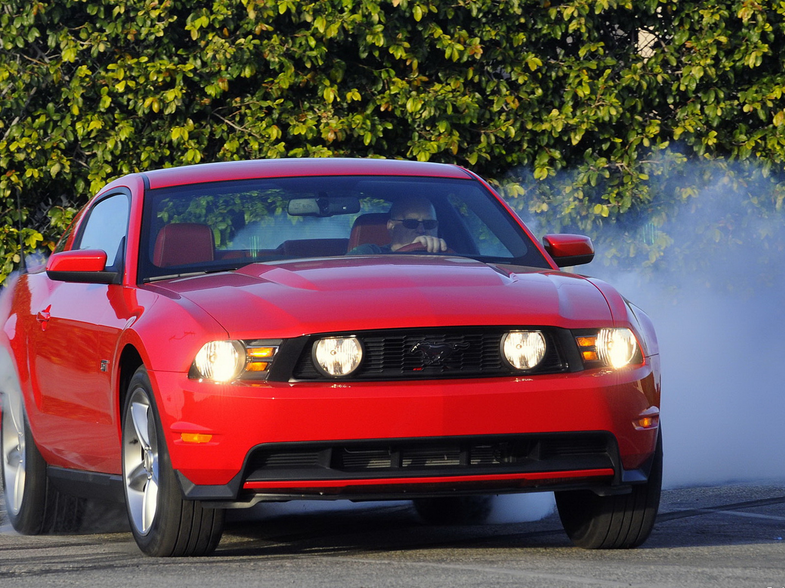 Скачать обои для рабочего стола Ford Mustang GT вид авто с развороту и фото