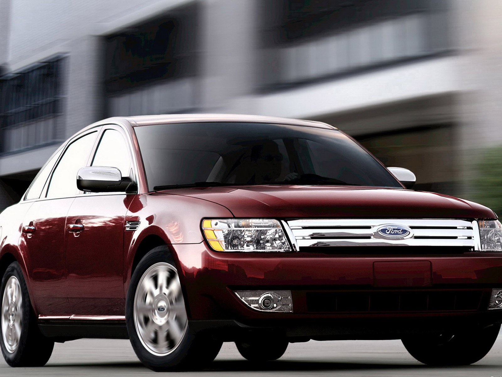 Скачать обои для рабочего стола Ford taurus вид авто на фоне города и фото