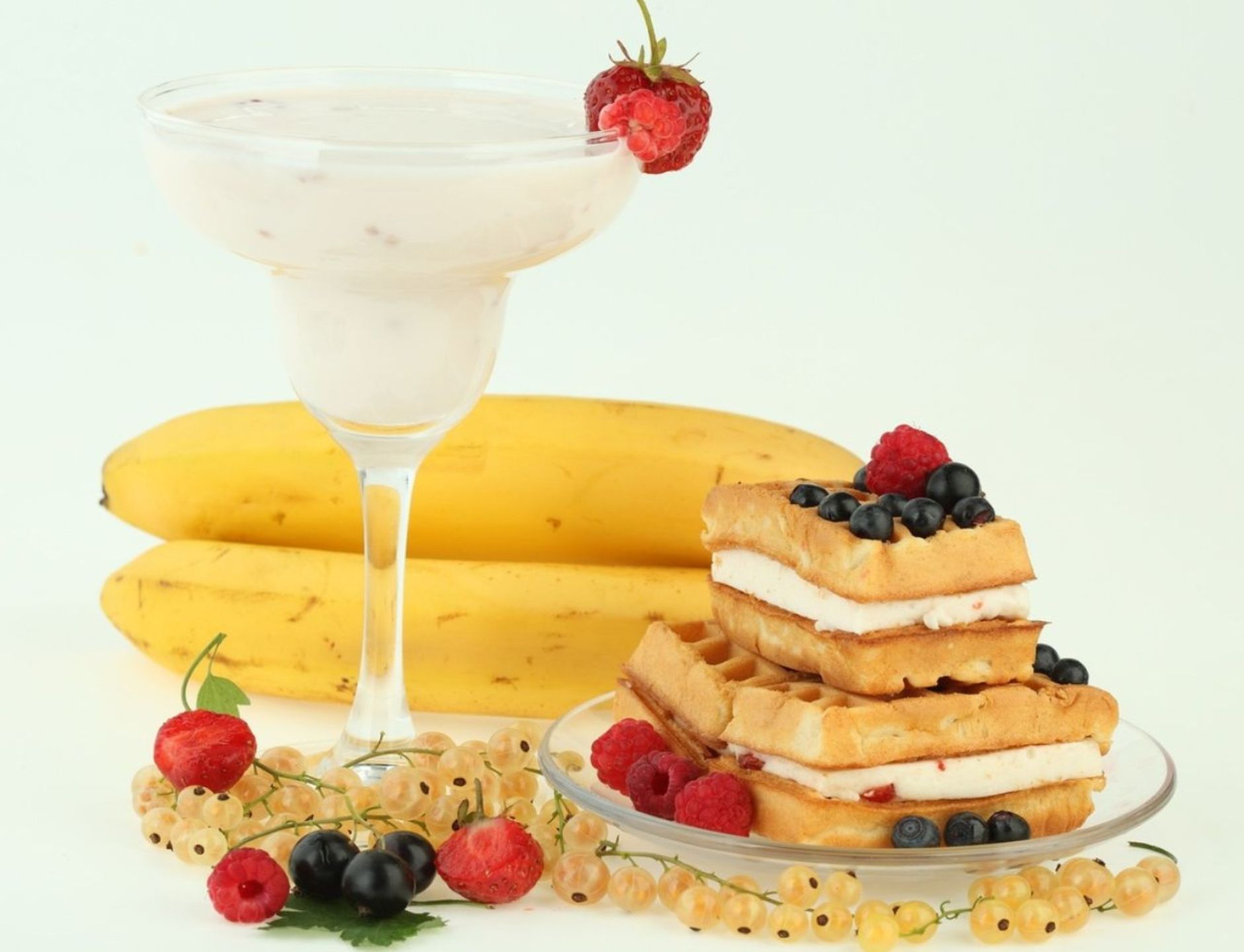Скачать обои для рабочего стола Фруктово-бисквитный десерт и фото