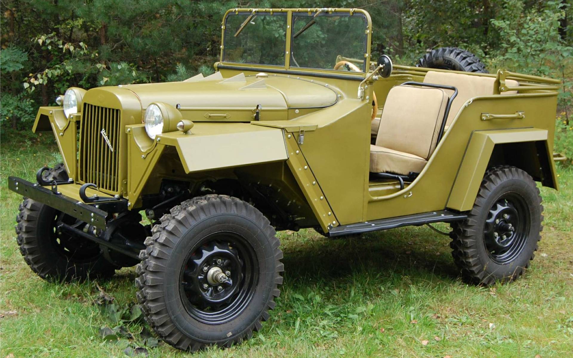 Скачать обои для рабочего стола Газ 67б на траве и фото