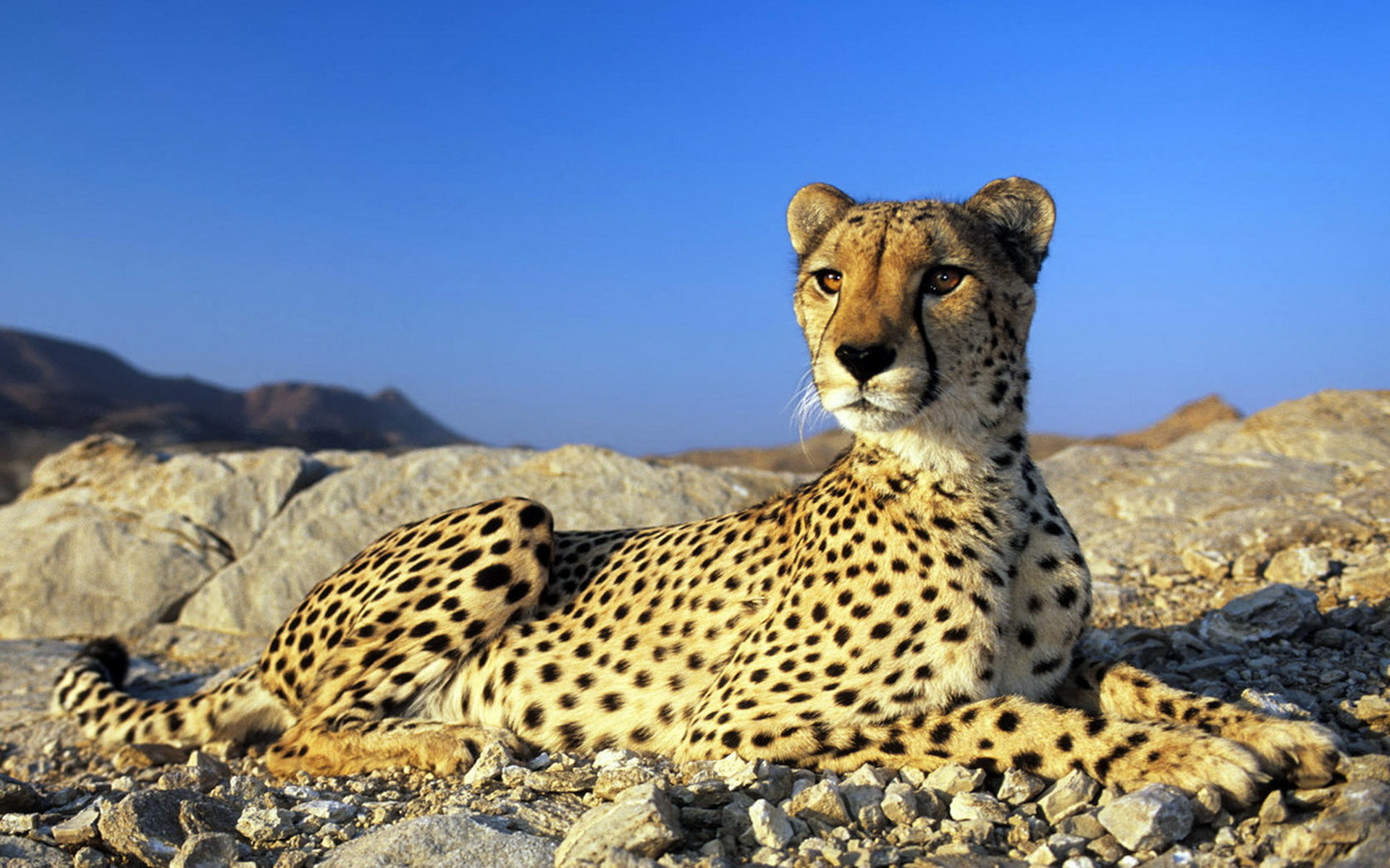 Скачать обои для рабочего стола Гепард на камнях и фото