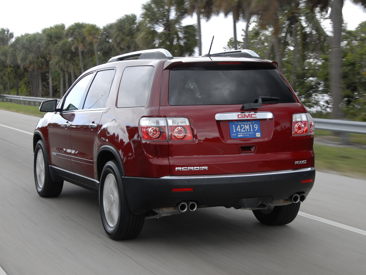 Скачать обои для рабочего стола GMC Acadia в движении вид сзади и фото