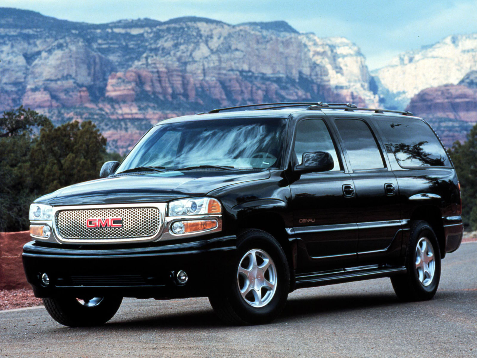 Скачать обои для рабочего стола GMC Yukon на фоне гор и фото