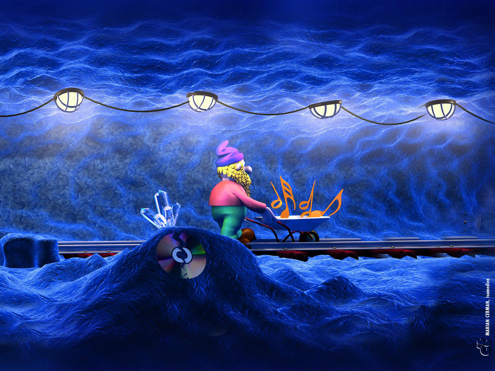 Скачать обои для рабочего стола Гномик добывает музыку и фото