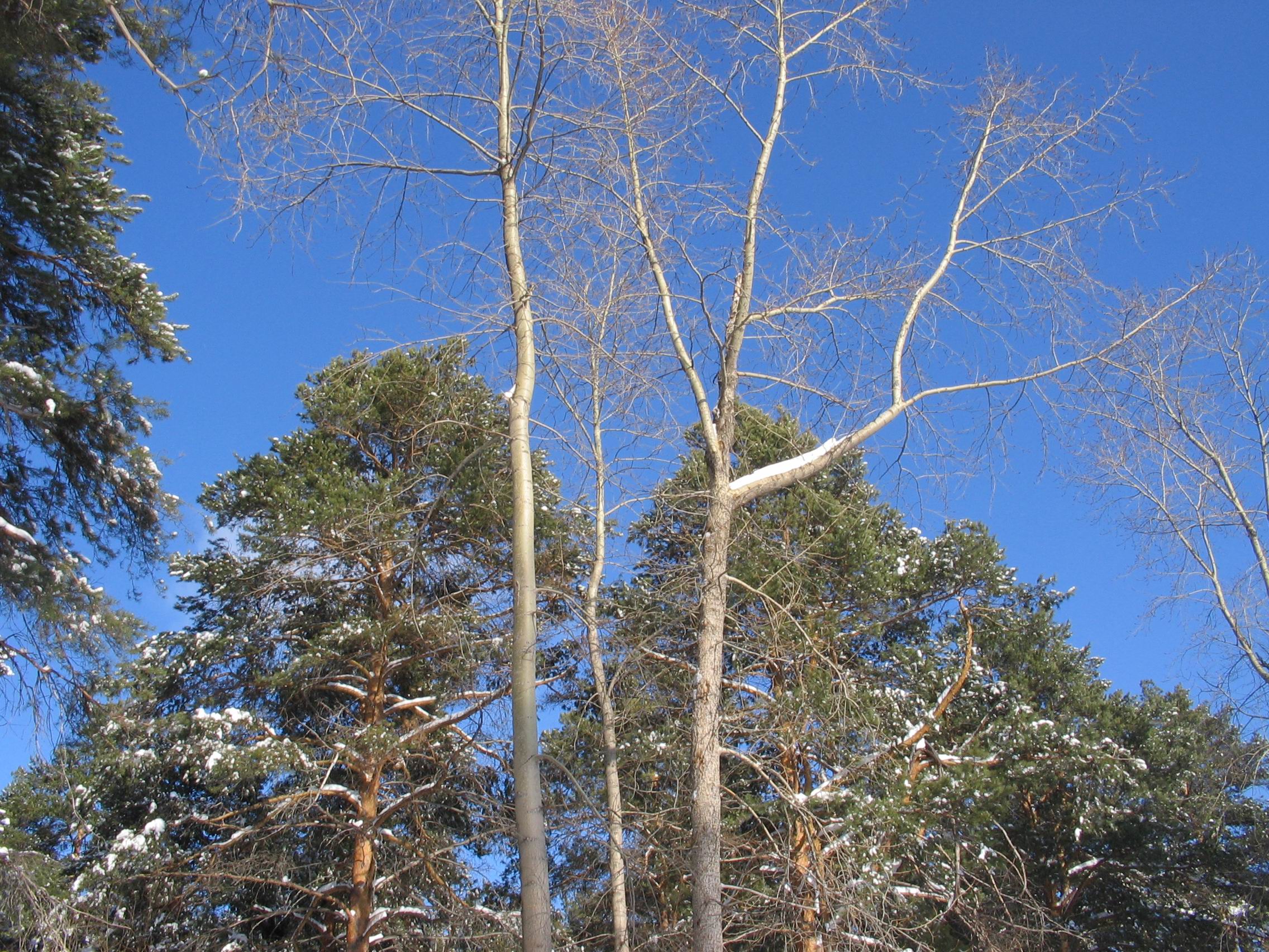 Скачать обои для рабочего стола Голое дерево среди соснового леса и фото