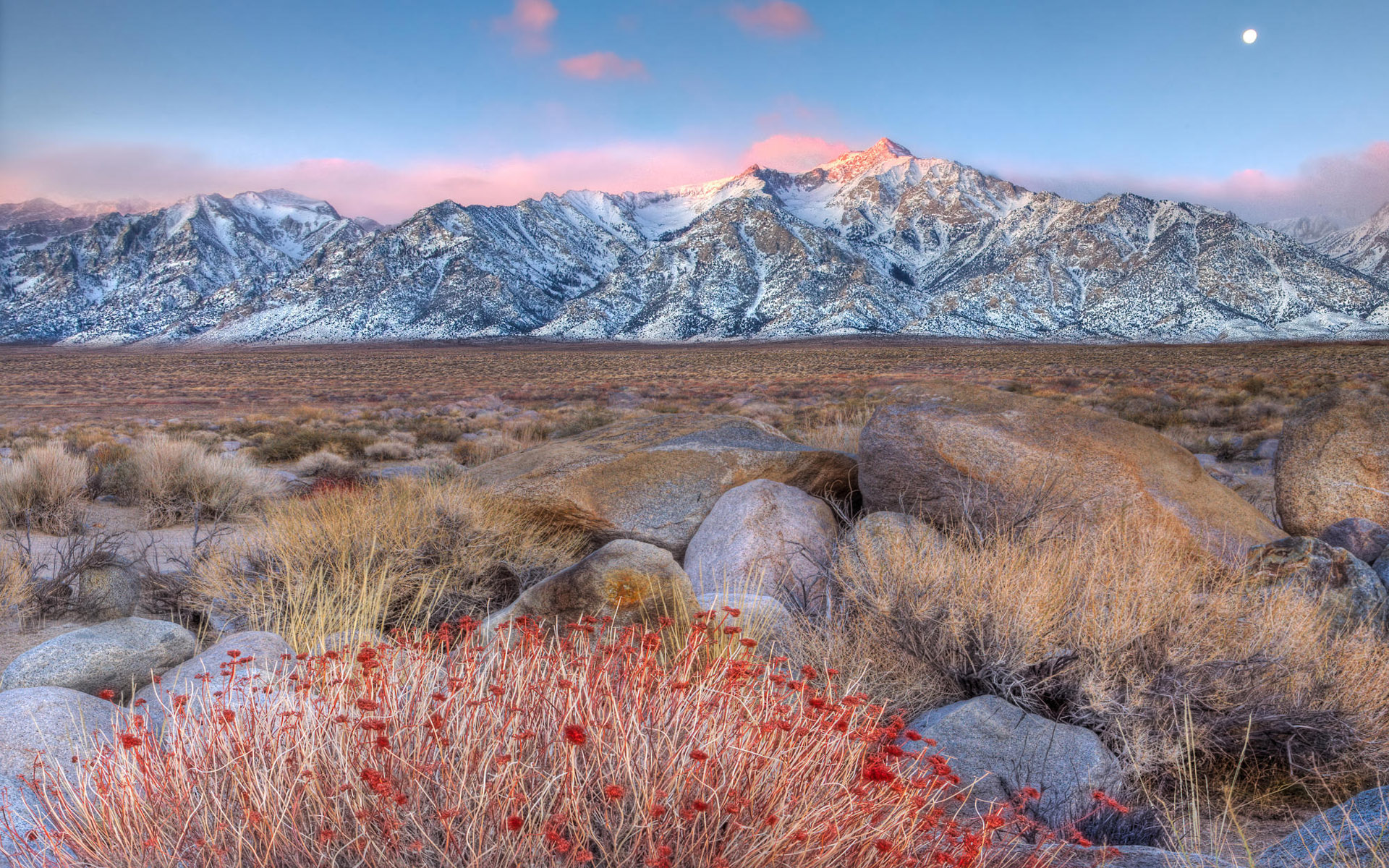 Скачать обои для рабочего стола Голое поле и снежные горы и фото
