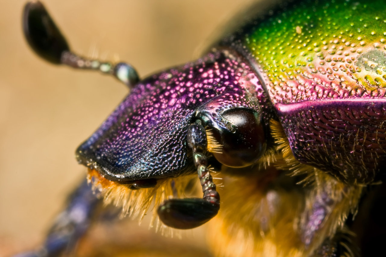 Скачать обои для рабочего стола Голова жука, радужный цвет и фото