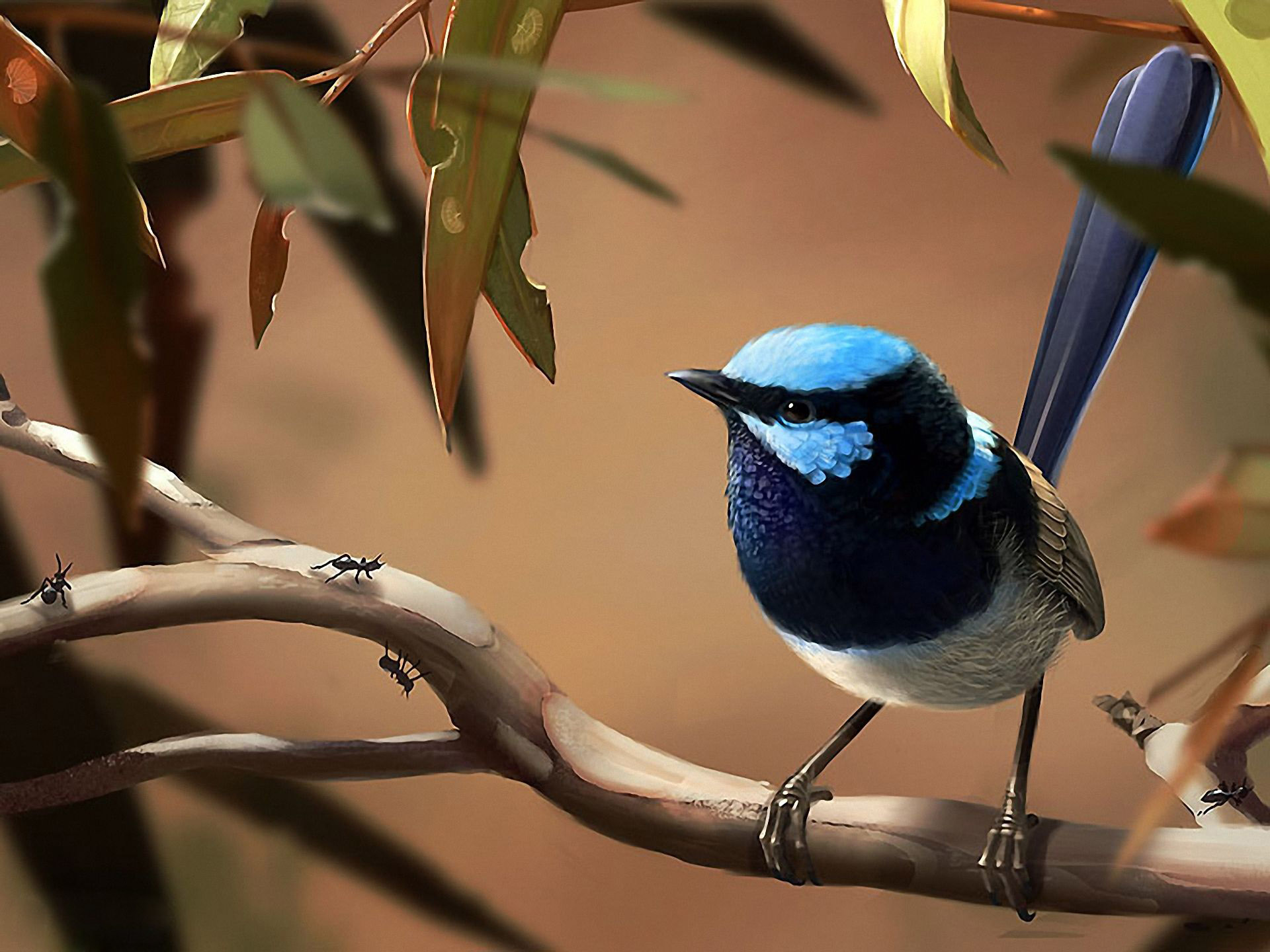 Скачать обои для рабочего стола Голубенькая птичка на ветке и фото