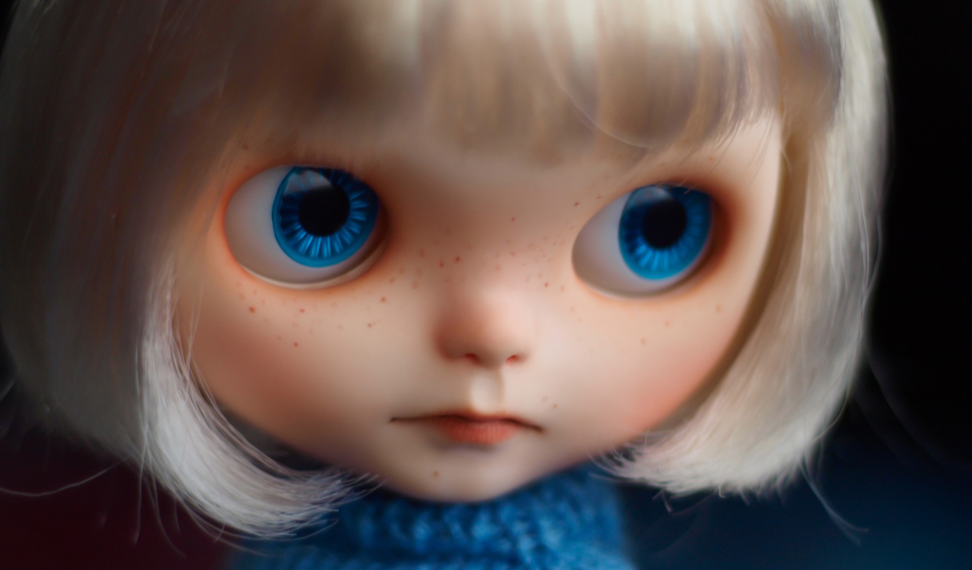 Скачать обои для рабочего стола Голубоглазая кукла в свитере и фото